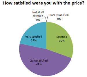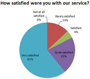 After each job we complete we survey our customers to find out if we delivered like we said we would. We want to know 3 main things: How satisfied were our customers with their job, with the service we gave them, and with the price they paid. The results speak for themselves. As the pie chart shows below: